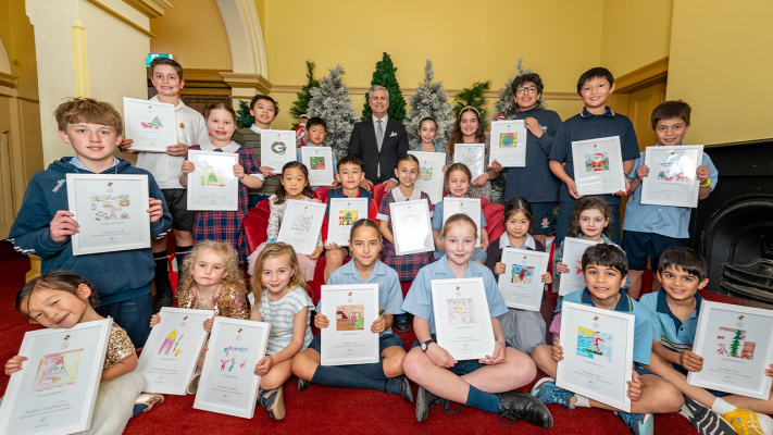 Image caption: 2025 Mayor's Christmas Card Competition winners and finalists. From magical snowy scenes and warm Aussie barbecues to festive family celebrations, students hand-drew and digitally created stunning artworks that truly captured the festive spirit. The City of Norwood Payneham & St Peters celebrated the unlimited creativity of local students...